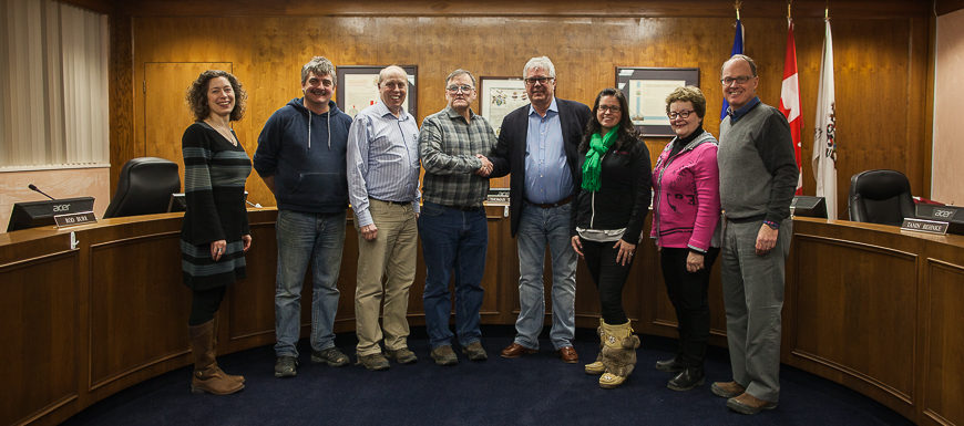 (Pictured above: From left, Director of Community Services Tanya Bell, Councillors Orren Ford and Rod Burr, Mayor Tom Tarpey, Andrew Loosley Director Stakeholder Relations at Baytex Energy Ltd, Councillor Tanin Behnke, Deputy Mayor Elaine Manzer and Councillor Colin Needham)