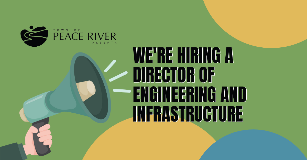 The Town of Peace River is accepting applications for the position of Director of Engineering and Infrastructure. This permanent full-time position will report to the Chief Administrative Officer and will provide leadership and guidance to the Engineering Department. The successful applicant will be responsible for all Town related engineering, GIS, planning and development, public works, fleet, facilities, roads and water and wastewater departments and will keep the CAO and Council advised on successes, challenges and other relevant matters. This position oversees a total compliment of 27 staff, with 5 direct reports. The Director must have knowledge of local government operations. Project management skills are required and the candidate must be capable to develop and manage budgets and capital plans.
