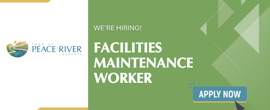 The Town of Peace River is accepting applications for one (1) permanent, full-time Facilities Maintenance Worker accountable to the Facilities Maintenance Supervisor and Public Works Superintendent.