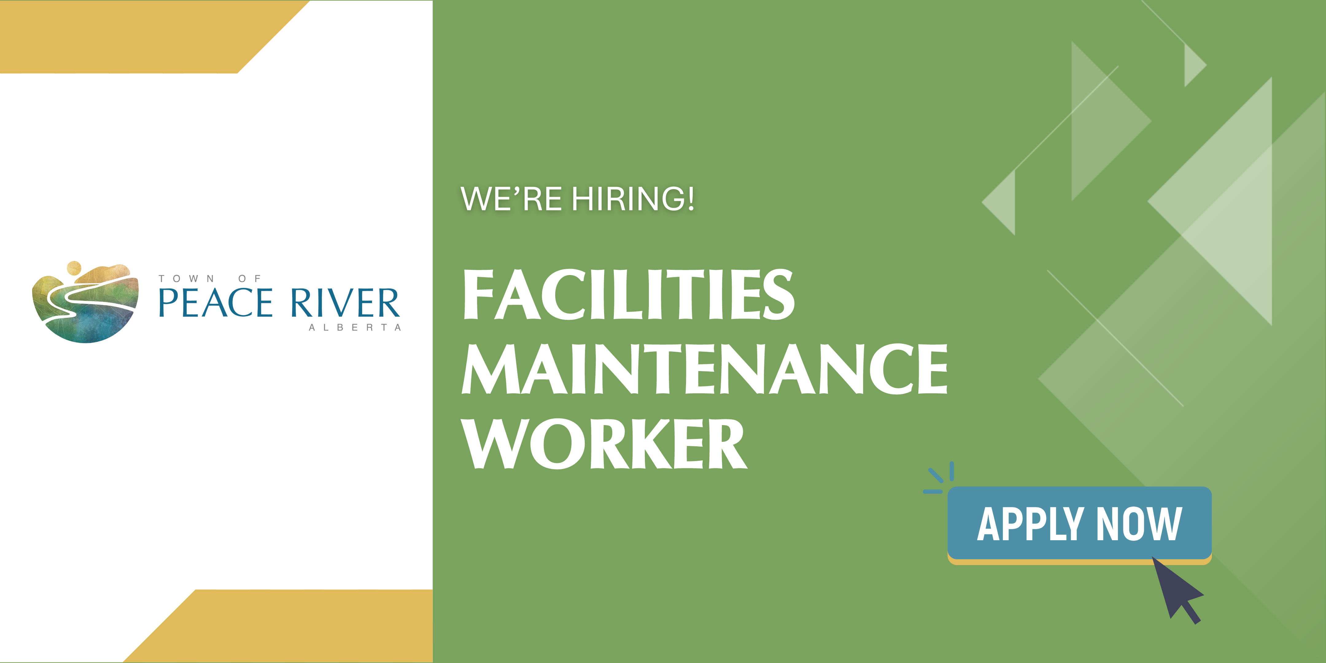 The Town of Peace River is accepting applications for one (1) permanent, full-time Facilities Maintenance Worker accountable to the Facilities Maintenance Supervisor and Public Works Superintendent.