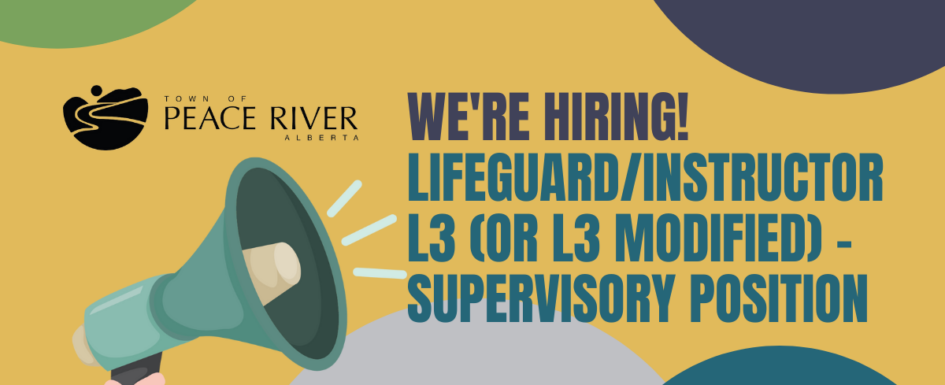 The Town of Peace River is looking for energetic and organized individuals to join our team at the Peace Regional Pool in the casual position of Lifeguard/ Instructor L3.
