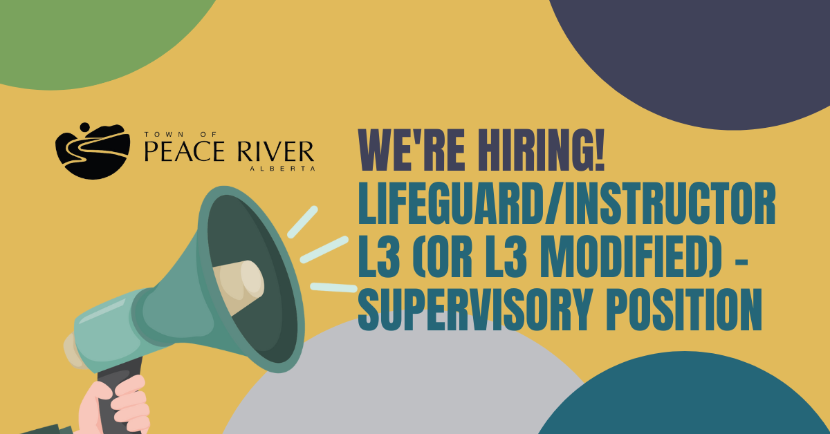 The Town of Peace River is looking for energetic and organized individuals to join our team at the Peace Regional Pool in the casual position of Lifeguard/ Instructor L3.