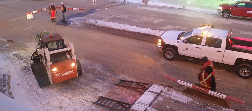 Cleanup is now underway, the system will need to be flushed to disinfect it before coming back online. Water service will be completely restored downtown by 5pm at the latest.