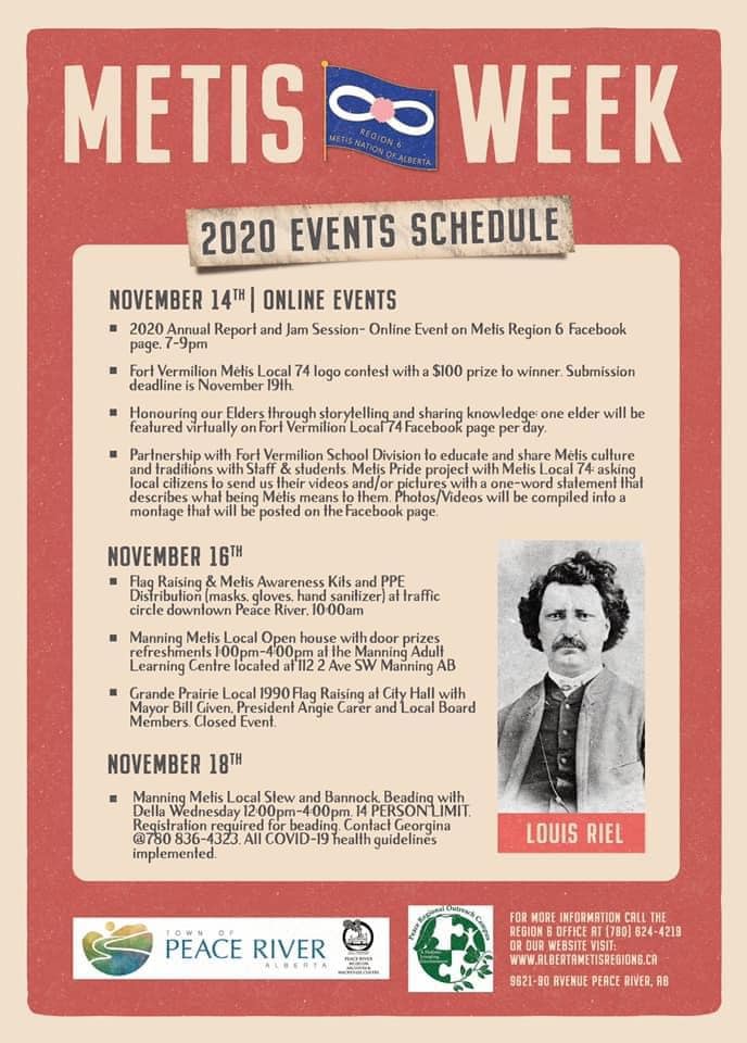 In honour and recognition of Métis week, the Métis flag has been raised at the community flagpole located in the Main Street Roundabout. The flag will fly until Nov. 22, following a request from the Métis Nation of Alberta Region 6.