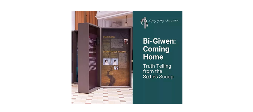 The Sixties Scoop Indigenous Society of Alberta” (SSISA), in partnership with the Government of Alberta and the Legacy of Hope Foundation, is bringing the Bi-Giwen: Coming Home – Truth Telling from the Sixties Scoop exhibition to various Alberta locations. The first of its kind exhibit shares the experiences of survivors, including twelve personal testimonials of strength and resilience.