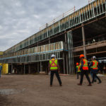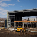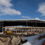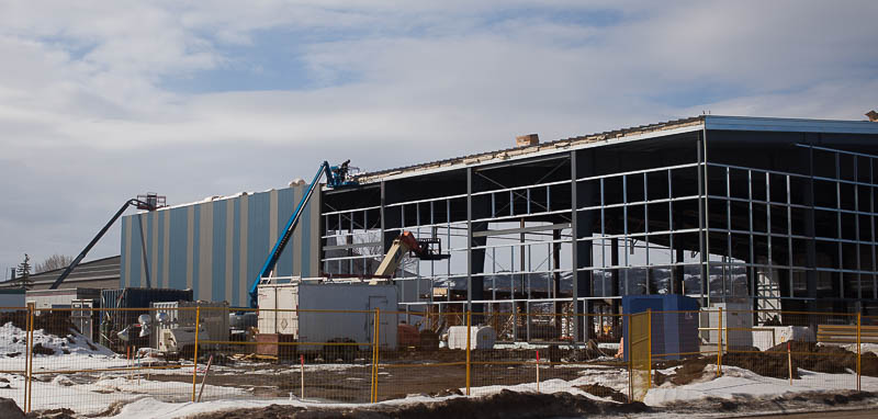 As January closed crews completed work on the foundation, months of prep work now allowed for the steel beams and wall support to be put in place. Throughout February and early-March the frame of the building took shape with the installation of the steel frames.
