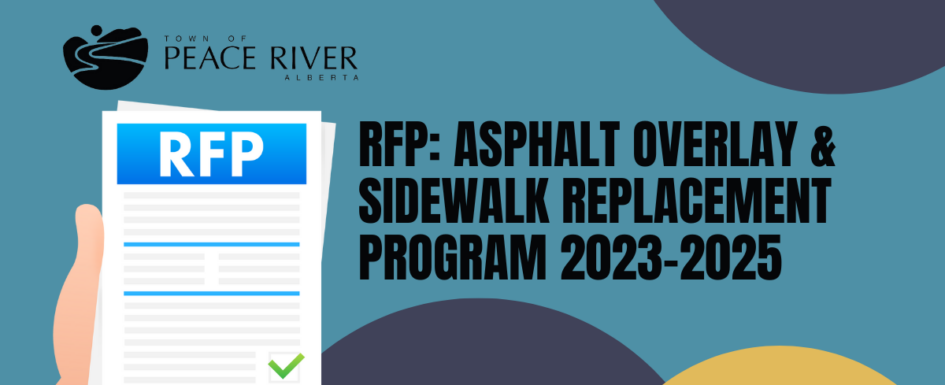 The Town of Peace River is seeking a qualified consultant to provide engineering and project management services annually to overlay asphalt pavement and replace concrete within the road, sidewalk, and trail networks. The Town anticipates replacing an estimated 1,500m of asphalt and an estimated 1,000m of sidewalk within Town limits over the course of three years.