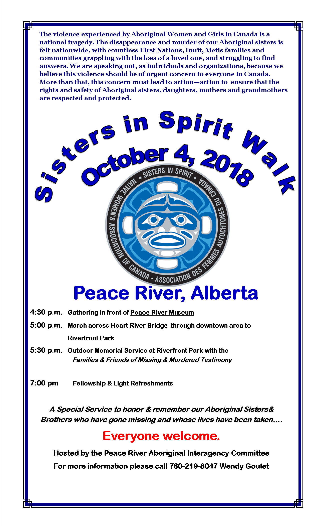 Today has officially been proclaimed Sisters in Spirit Day in Peace River. Events are taking place later in the day to mark the day.